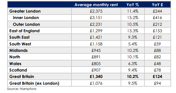This increase meant that tenants who moved into new homes forked out an average of £124 per month more in rent, equating to an extra £1,488 a year.
